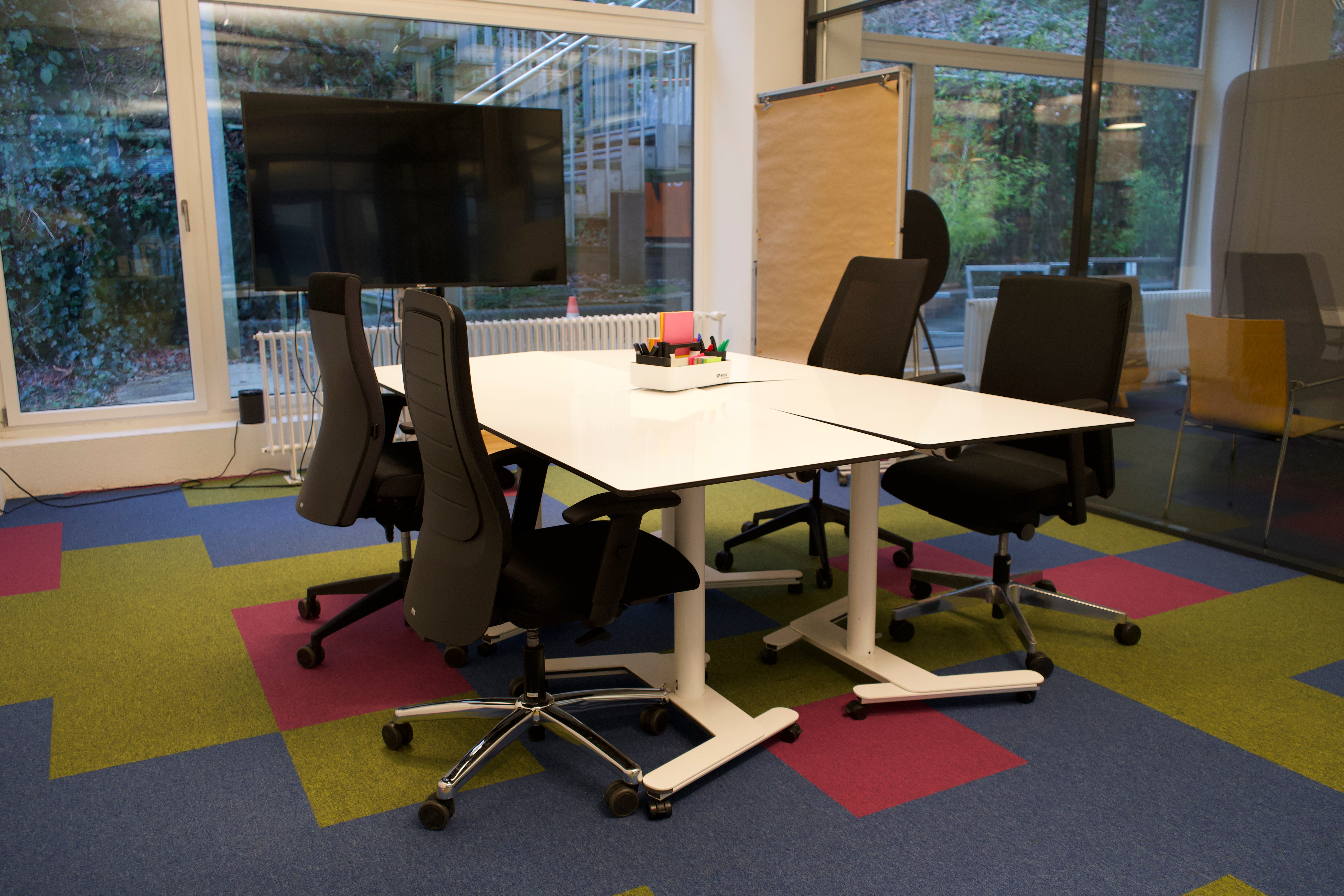 • Ausstattung: Sofasitzgruppe, Schreibtische und Stühle, Pinnwände, Flipcharts, Schreibmaterial und Post-its, Ideapaint-Wand (beschreibbar mit speziellen Stiften), weiteres Material auf Anfrage, Selbstbedienungsküche (inkl. Kaffeemaschine, Kühlschrank, Geschirr, etc.)